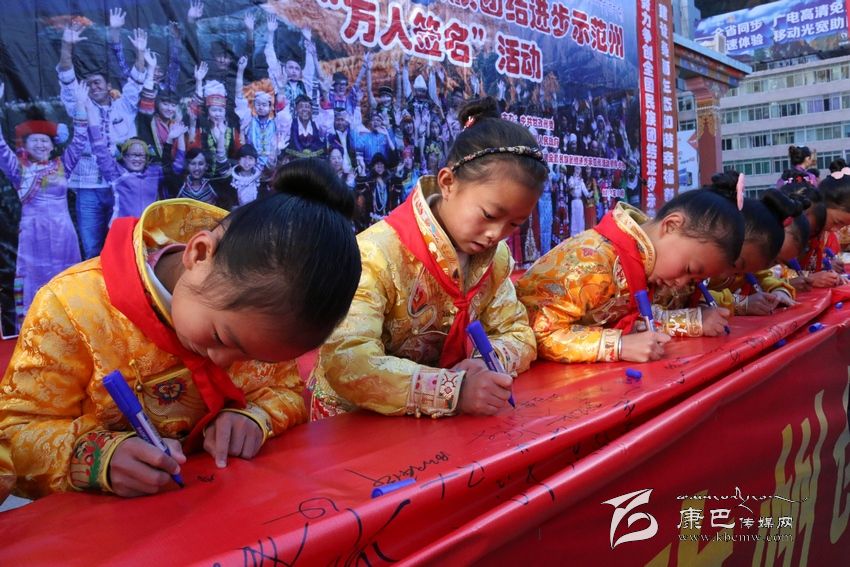 我們的家鄉(xiāng)更好更快地發(fā)展。”11月20日,在我州康定情歌廣場舉行創(chuàng)建全國民族團(tuán)結(jié)進(jìn)步示范州“萬人簽名”活動(dòng)現(xiàn)場,來自省藏校的學(xué)生代表李康珠這樣說道。