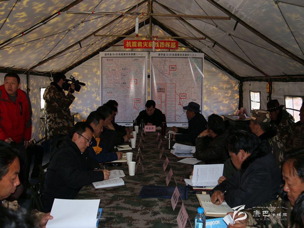 在前線指揮部,胡昌升主持召開前指工作專題會議,傳達(dá)了省委書記王東明和省長魏宏到我州地震災(zāi)區(qū)調(diào)研指示精神,聽取前線指揮部辦公室和營地各單位、康定縣、道孚縣關(guān)于抗震救災(zāi)工作的匯報(bào)。