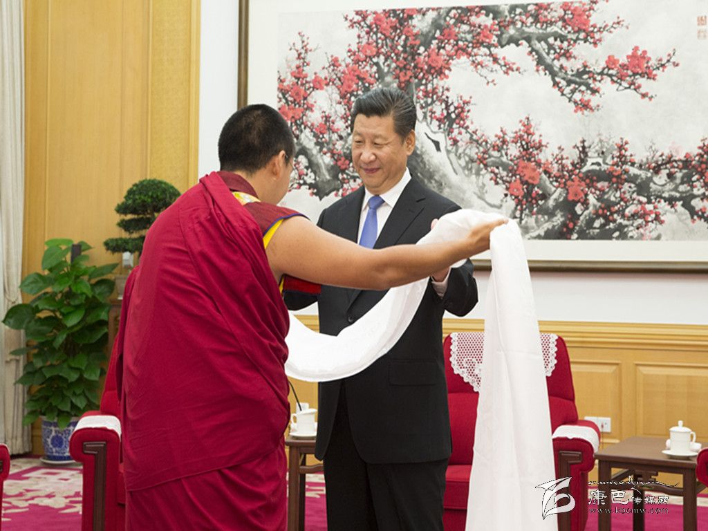 班禪向習(xí)近平敬獻了哈達,并介紹了他坐床20年來的情況,習(xí)近平對他在各方面取得的進步表示祝賀。