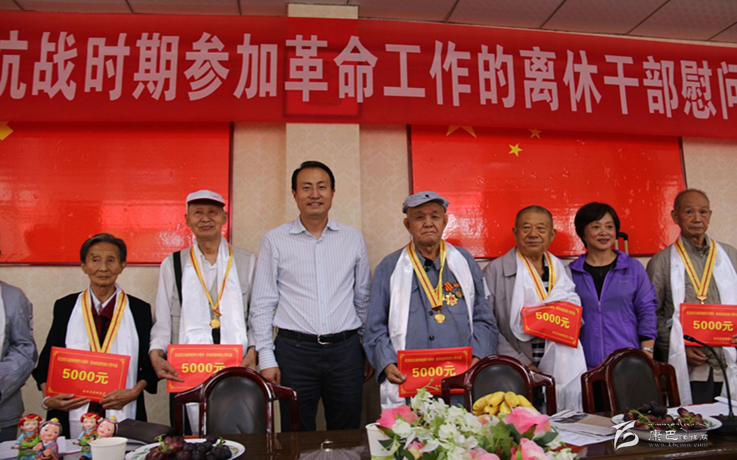 9月2日,甘孜州抗戰(zhàn)時期參加革命工作的離休干部慰問大會在州屬雅安干休所舉行。州委常委、組織部長趙波出席會議并為我州1945年9月前參加過抗戰(zhàn)的7位老戰(zhàn)士代表頒發(fā)了中國人民抗日戰(zhàn)爭暨世界反法西斯戰(zhàn)爭勝利70周年紀(jì)念章,同時還送上了慰問金。