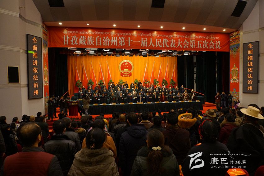 上午10時20分,劉成鳴宣布甘孜州第十一屆人民代表大會第五次會議開幕。全體起立,雄壯的中華人民共和國國歌在會場內(nèi)唱響。
