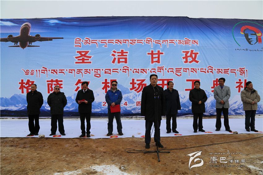 益西達(dá)瓦在致辭中指出,甘孜格薩爾機(jī)場(chǎng)是繼康定機(jī)場(chǎng)、稻城亞丁機(jī)場(chǎng)之后,我州建設(shè)的第三個(gè)機(jī)場(chǎng),項(xiàng)目投資22.88億元,力爭(zhēng)2017年10月建成試飛。甘孜格薩爾機(jī)場(chǎng)的開工建設(shè),是我州實(shí)施“交通先行”戰(zhàn)略的重大舉措,對(duì)進(jìn)一步加快我州經(jīng)濟(jì)社會(huì)全面協(xié)調(diào)可持續(xù)發(fā)展具有十分重要的意義。該機(jī)場(chǎng)的建成,必將開啟我州“十三五”發(fā)展的新征程,必將推動(dòng)我州經(jīng)濟(jì)社會(huì)實(shí)現(xiàn)新跨越,必將促進(jìn)我州旅游等產(chǎn)業(yè)實(shí)現(xiàn)新發(fā)展,必將加快我州農(nóng)牧民群眾脫貧奔康的新步伐。他說,建設(shè)甘孜格薩爾機(jī)場(chǎng)是全州人民特別是北路群眾多年的期盼,機(jī)場(chǎng)規(guī)劃在“十一五”、爭(zhēng)取在“十二五”、建設(shè)在“十三五”,飽含著中央領(lǐng)導(dǎo)和國家部委的厚愛,體現(xiàn)著省委、省政府的重視,凝聚著歷屆州委、州政府的心血,我們一定要倍加珍惜,一定要把甘孜格薩爾機(jī)場(chǎng)建設(shè)成一流的高原機(jī)場(chǎng)。希望甘孜、德格兩縣通力合作、協(xié)調(diào)配合,切實(shí)為機(jī)場(chǎng)建設(shè)營造良好的外部環(huán)境;希望州級(jí)相關(guān)部門簡化程序、搞好服務(wù),切實(shí)為該機(jī)場(chǎng)建設(shè)開辟“綠色”通道;希望廣大人民群眾多理解、多支持,切實(shí)擁護(hù)機(jī)場(chǎng)的各項(xiàng)建設(shè);希望各參建單位和廣大建設(shè)者發(fā)揚(yáng)“亞丁機(jī)場(chǎng)精神”,努力把甘孜格薩爾機(jī)場(chǎng)建設(shè)成為一流的標(biāo)桿工程。