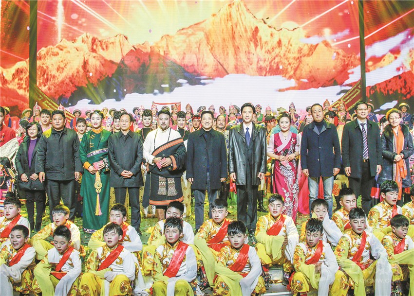 團拜會在歌舞《祝福甘孜》中落下帷幕。演出結(jié)束后,劉成鳴、肖友才等州領(lǐng)導(dǎo)登上舞臺與演職人員握手致意,感謝大家的辛勤付出。