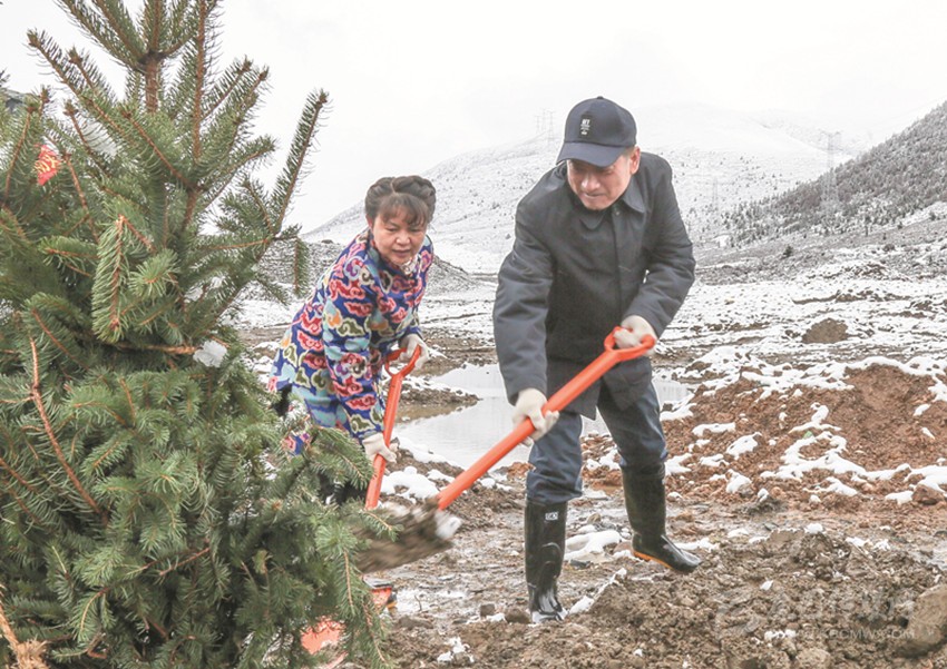 在海拔3800米的呷巴鄉(xiāng)植樹點,劉成鳴、向秋、包建華與其他州領導一道拿起鐵鍬與機關干部、部隊官兵和學生們一起植樹。挖坑、扶苗、填土、澆水……大家合力栽下楊柳、高山柳等一棵棵適合當地生長的樹苗。植樹過程中,劉成鳴還不時詢問本次義務植樹活動的栽種面積、樹木品種及成活率等情況。在與同學們一起植樹時,劉成鳴勉勵同學們從小樹立保護環(huán)境、愛綠護綠意識,多做有意義的事,用勤勞的雙手建設美好家園,要像今天種下的一棵棵樹苗一樣,健康茁壯成長。