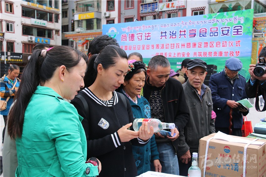 啟動(dòng)儀式后,在康定情歌廣場(chǎng)上,來自州食安委和康定市食安相關(guān)成員單位通過現(xiàn)場(chǎng)咨詢、板塊展示、張貼海報(bào)標(biāo)語(yǔ)、發(fā)放資料等方式,為前來關(guān)注食品安全的市民們發(fā)放和講解相關(guān)問題。在現(xiàn)場(chǎng),記者看到廣大市民關(guān)注最多的是假冒偽劣食品,對(duì)于如何識(shí)別,現(xiàn)場(chǎng)工作人員都一一進(jìn)行了耐心細(xì)致地講解。