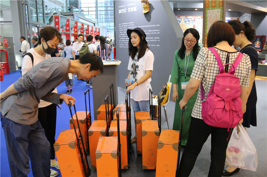 318線精品旅游線路圖、創(chuàng)意拉桿箱;原本一些靜態(tài)的物品被潮流的設(shè)計(jì)之后,在“藝?甘孜”展館門口屢屢賣到脫銷。此次文博會(huì),甘孜州全境文化產(chǎn)業(yè)發(fā)展公司順應(yīng)旅游市場(chǎng)推出了一系列“接地氣”的文化創(chuàng)意產(chǎn)品。通過(guò)傳統(tǒng)文化和日常生活的無(wú)縫銜接,旅游、文物在老百姓心中變得更加生動(dòng)有趣、接地氣。該公司運(yùn)營(yíng)總監(jiān)梅小恩說(shuō):“由于多次參加布展,考慮到消費(fèi)者購(gòu)物后,攜帶很不方便。于是前期公司就設(shè)計(jì)制成這款具有康巴文化的文創(chuàng)產(chǎn)品IP形象,雖然是一款紙箱,但款式都以真皮箱相仿,設(shè)計(jì)理念是康巴漢子騎著摩托車奔馳在318線上,這一理念得到了市民認(rèn)同,前來(lái)購(gòu)買的人很多,消量特別好。下步將立馬上線,推出皮箱系列,到今天為止訂單都很多了。”