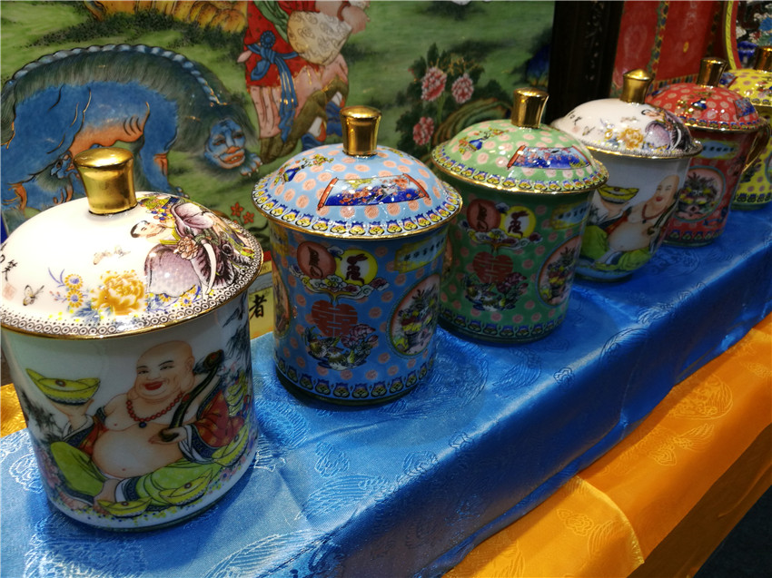 付國華在介紹時(shí)說,“高溫粉彩”必須以線條繪畫,將陶瓷唐卡染上顏料燒制,燒制完后再上色再燒制,然后再上色再燒制,在高溫1200度反復(fù)燒制五六次,才能達(dá)到一幅比較完整的唐卡。下步公司將黑陶作為新的挖掘目標(biāo),相信在馮建華老師的指導(dǎo)下,我州黑陶高溫粉彩陶瓷藝術(shù)將呈現(xiàn)出新亮點(diǎn),“高溫粉彩”陶瓷藝術(shù)將在廣闊的市場(chǎng)中,為喜愛這一藝術(shù)品的消費(fèi)者提供需求。