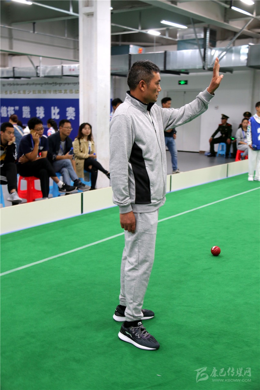 “紅球出界,藍(lán)球一方得4分。”“紅球一方準(zhǔn)備發(fā)球。”這時(shí)在北門(mén)體育場(chǎng)蹴球比賽四個(gè)比賽場(chǎng)地中央,裁判打出了得分指令和開(kāi)球命令。得4分是該項(xiàng)賽事的最高分,也有同時(shí)得分的規(guī)則,如當(dāng)紅球擊打藍(lán)球時(shí),同時(shí)出場(chǎng),紅球一方得4分,而藍(lán)球一方也能得2分。這時(shí),裁判會(huì)打出4和2的手勢(shì),引導(dǎo)記分人員作好記分?!斑@與乒乓球規(guī)則有些相似,但不同的是乒乓球裁判是坐著的,而蹴球裁判是站起的。”觀眾看后都這樣認(rèn)為,這就是蹴球的魅力。