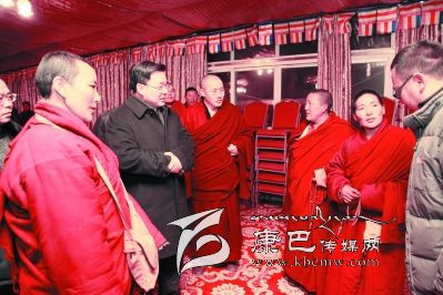 本網(wǎng)訊(記者 袁飛 文/圖)帶著黨和政府的親切關(guān)懷,1月11日晚,州委書記胡昌升趕赴色達(dá)縣五明佛學(xué)院,看望和慰問受災(zāi)僧尼。他強(qiáng)調(diào),寺廟是我們的基本單位,僧尼是我們的基本群眾,一定要千方百計(jì)安排和照顧好受災(zāi)僧尼的基本生活,確保受災(zāi)群眾溫暖過冬。要一對(duì)一的進(jìn)行幫扶,并做好她們的思想工作,振作精神,以一種良好的心態(tài),共同克服眼前的困難。