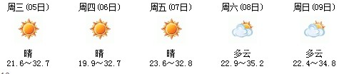 5日開始一直到9日都是多云到晴的天氣,日最高氣溫27℃左右。每天都有陣雨(小雨),考生出行應(yīng)防山地災(zāi)害。