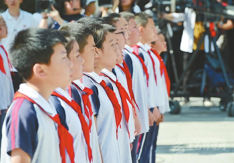 7月28日,紅軍飛奪瀘定橋紀(jì)念館前,少先隊(duì)員向英雄致敬。