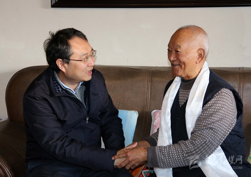 石鋼先后來到足麥、楊文有老同志家中,向他們敬獻哈達,與他們促膝談心,關切詢問他們的身體狀況和生活情況,衷心祝愿新春愉快、身體健康、闔家幸福。