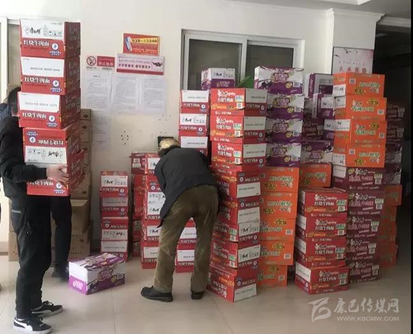一箱箱方便面、牛奶、餅干等物資被搬運(yùn)進(jìn)了康定市衛(wèi)生健康局的大廳。