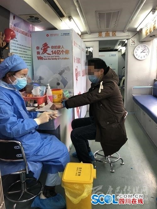 四川在線消息(記者 吳亞飛 文/圖)2月17日下午14點,兩名新冠肺炎康復(fù)者,在成都市血液中心血漿采集專車上完成血漿捐獻。這是成都市在全省首次采集新冠肺炎康復(fù)者血漿,將用于新冠肺炎重癥、危重癥患者治療。