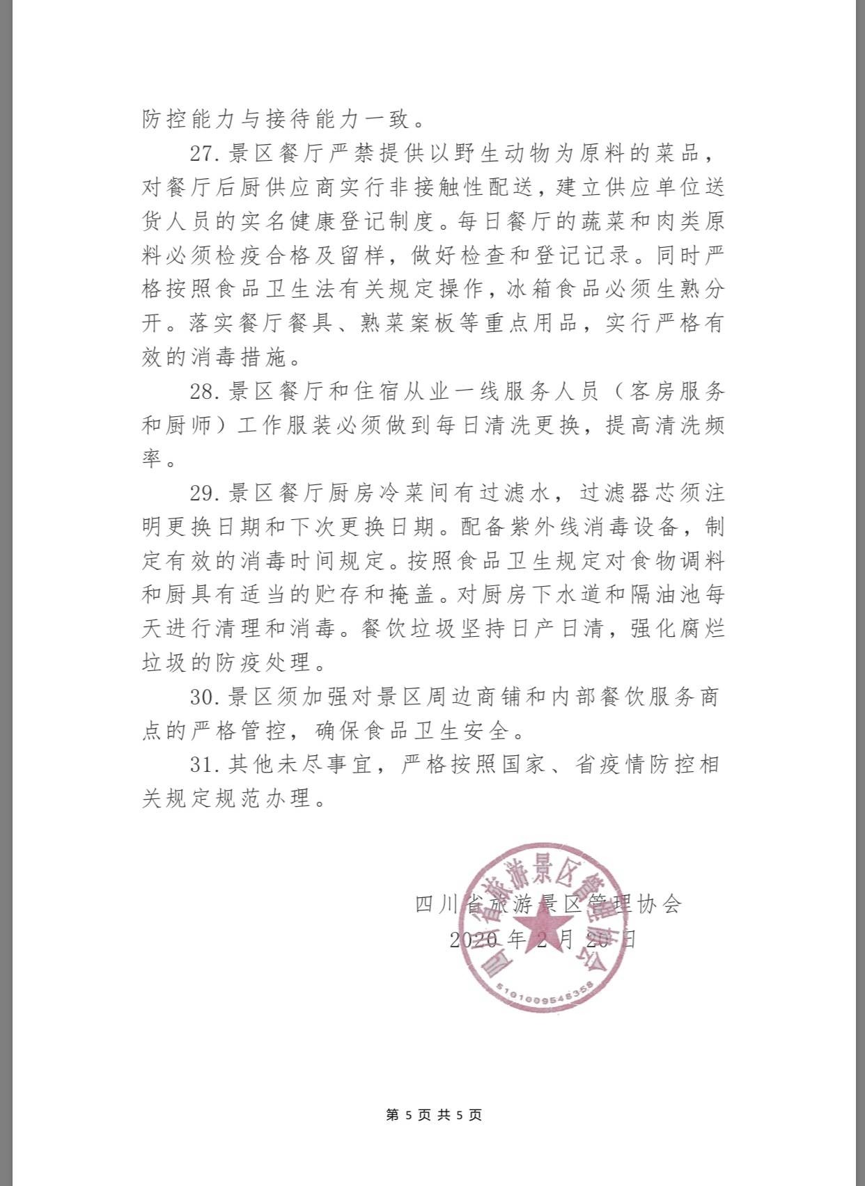 2月20日,四川省旅游景區(qū)管理協(xié)會對外發(fā)布《四川省新型冠狀肺炎疫情防控期間旅游景區(qū)開放工作指南》(以下簡稱“《指南》”),對此前因疫情防控暫時關(guān)閉的景區(qū)恢復(fù)開放“指點迷津”,提出景區(qū)須通過網(wǎng)絡(luò)實名制購票,日接待量不超過日最大承載量的50%,景區(qū)要設(shè)立臨時隔離點等。