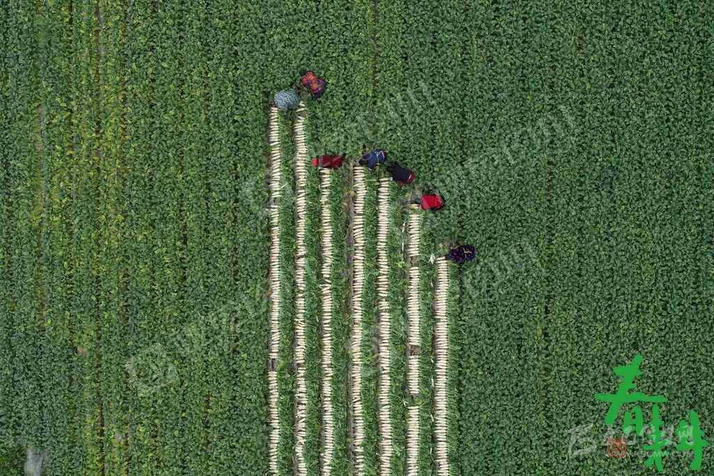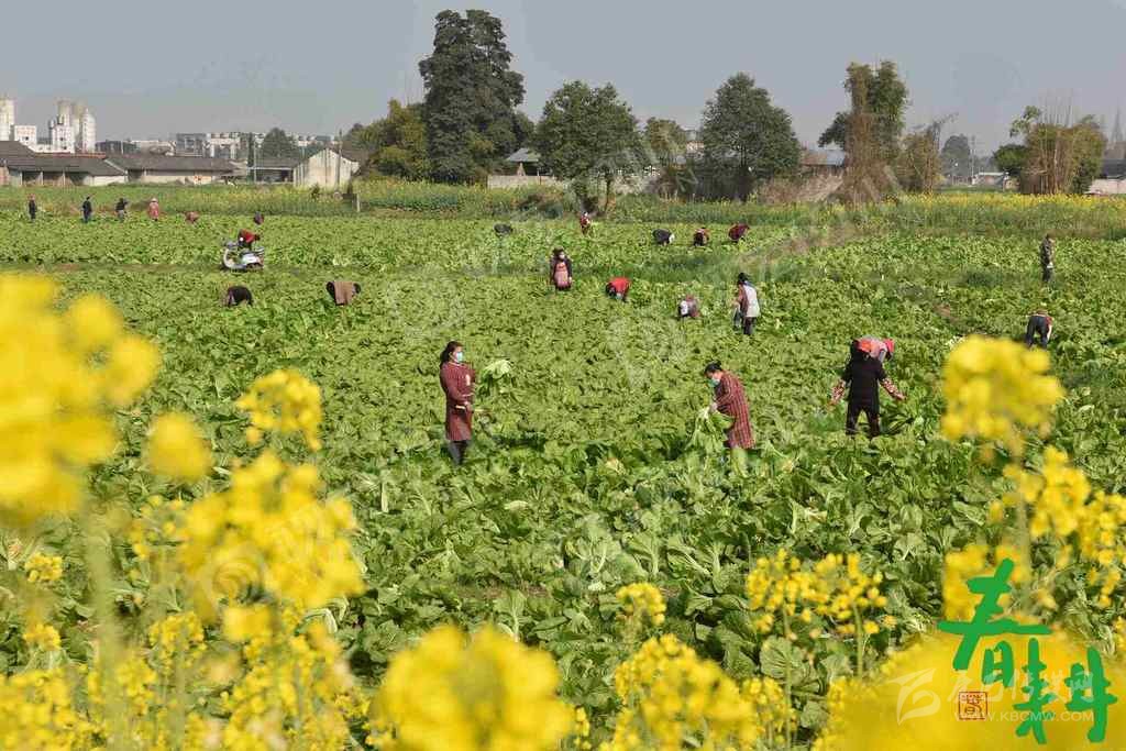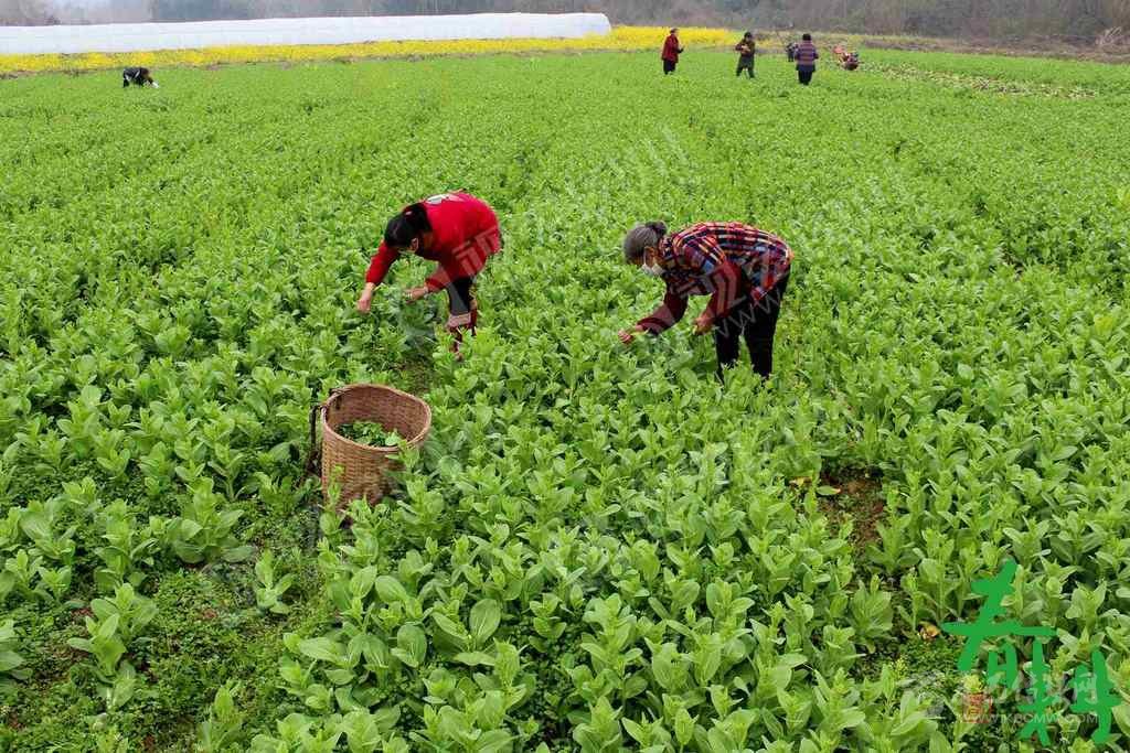 綿竹市紫巖街道雙坪村5組,當(dāng)?shù)剞r(nóng)戶在天佑家庭農(nóng)場收割青菜,以便騰地后用于水稻生產(chǎn)。
