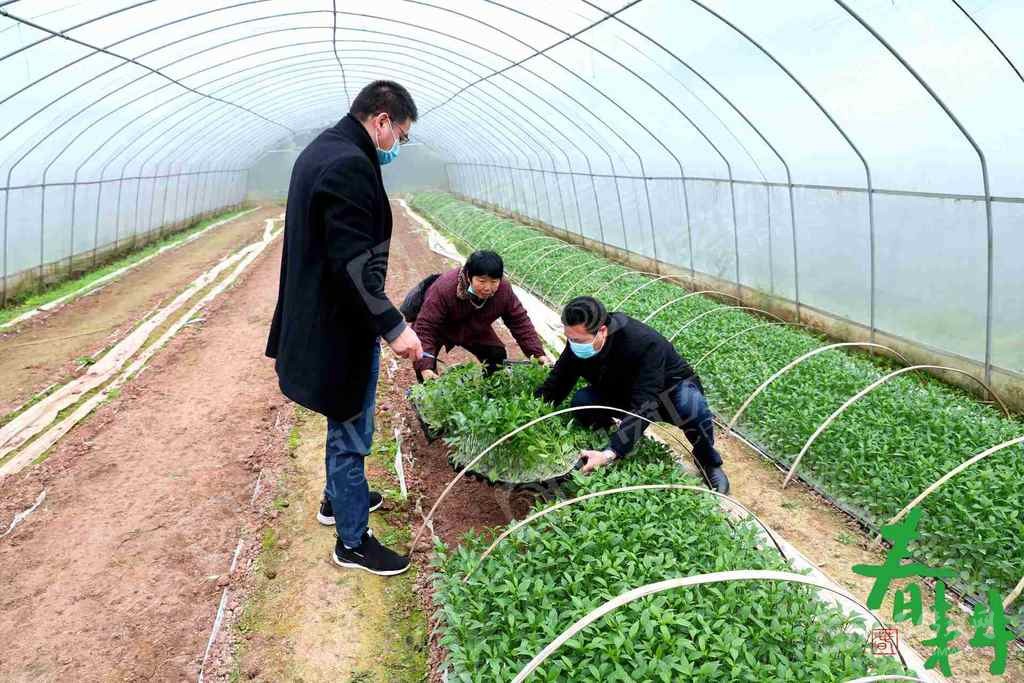 廣安市廣安區(qū)信訪局幫扶黨員干部正在悅來鎮(zhèn)大棚蔬菜育苗基地起海椒苗。