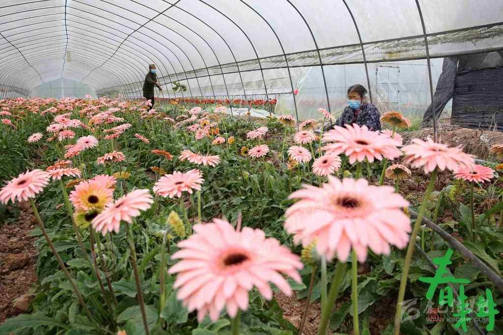 內(nèi)江市東興區(qū)田家鎮(zhèn),韓娟種植專業(yè)合作社的農(nóng)民正在大棚里管理花卉。