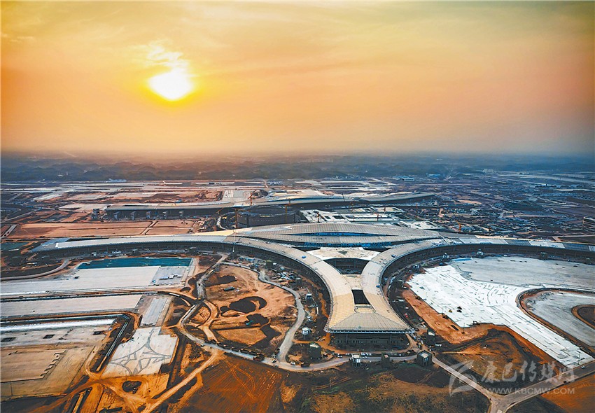 俯瞰晨曦中的成都天府國際機(jī)場施工現(xiàn)場。成都天府國際機(jī)場各項工程自全面復(fù)工以來,在嚴(yán)格防疫的基礎(chǔ)上,力搶工期,加快建設(shè)。