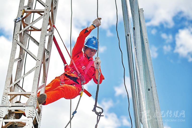 到達(dá)施工現(xiàn)場(chǎng),組塔工作也是十分艱難,鐵塔結(jié)冰,僅登塔時(shí)間便多出一倍,而作業(yè)時(shí)間每次不能超過(guò)半小時(shí),還要隨時(shí)面臨大風(fēng)、大雨、冰雹等天氣,導(dǎo)致工期推進(jìn)速度較平原地區(qū)慢一倍時(shí)間?!盀榱粟s在6月20日完成任務(wù),我連每天與女兒視頻的時(shí)間都省了,全力投入工作中?!表?xiàng)目部負(fù)責(zé)導(dǎo)線展放的電力工人楊彪說(shuō)。