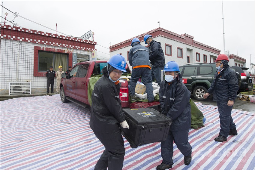 獲知“災情”的第一時間, 國網四川省電力公司馬上發(fā)布集結準備信息,聯系國網陜西省電力公司、重慶市電力公司進行應急聯動支援。國網甘孜供電公司立即啟動應急預案迅速響應,對災害進行先期處置。來自陜西、重慶和四川應急中心、信通公司、自貢公司、遂寧公司、眉山公司、電力醫(yī)院等6家基層單位的11支應急隊伍全副武裝,攜帶工器具和應急救援物資,在蒲江集結后,頂風冒雨,遠距離奔襲7小時抵達“災區(qū)”。
