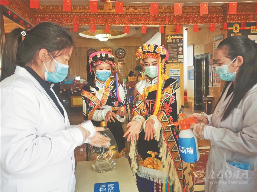 巴塘、九龍、得榮、理塘、甘孜、新龍、德格、白玉等各縣演出隊(duì)也十分重視防疫工作。每個(gè)演出隊(duì)均配齊了酒精、口罩、體溫槍等防疫用品,并在到達(dá)康定前,就對(duì)各自演出隊(duì)開展了防疫宣傳、知識(shí)普及等工作。
