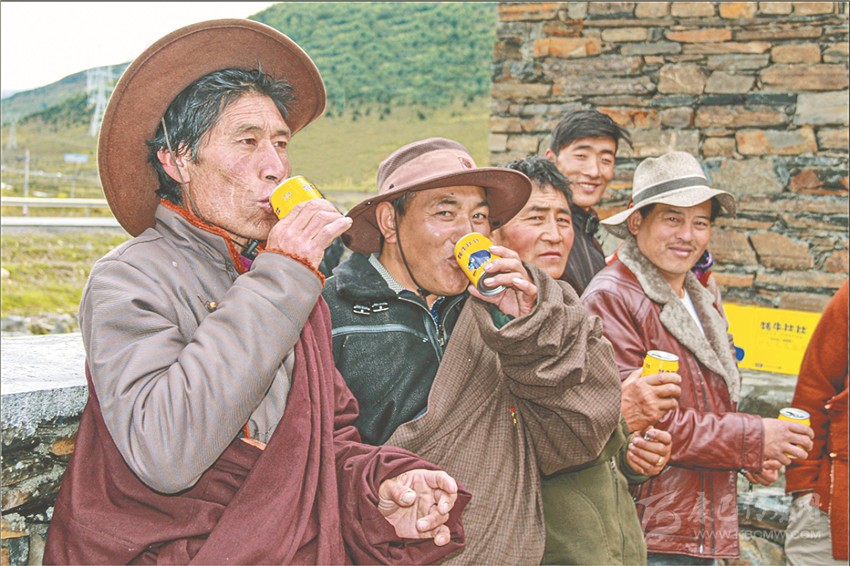 8月9日,格德措姆為騎友倒酥油茶。四川日報全媒體記者 衡昌輝 攝