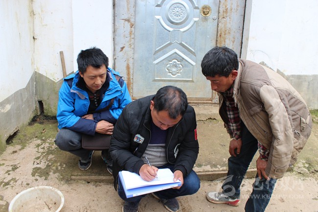 牟爾古(中)入戶核實收入、登記年輕人的基本信息。受訪者供圖
