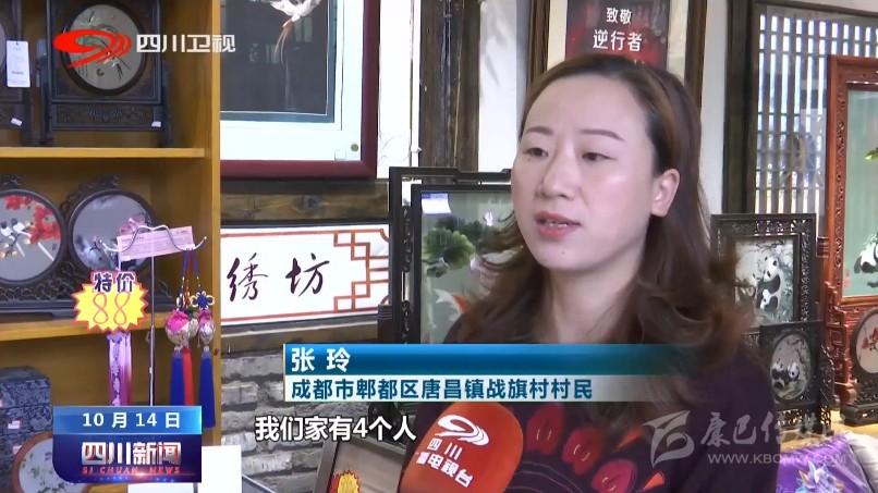 成都市郫都區(qū)唐昌鎮(zhèn)戰(zhàn)旗村村民張玲說:“村上根據我們土地入股的畝數,我們家有4個人,每年能夠分到5000塊錢左右,年底還有集體經濟分紅2000塊錢左右。我就在蜀繡坊上班,我老公在村上上班,我媽媽在家里面做民宿,這樣比以前種地時候收入高了很多?!?/p>