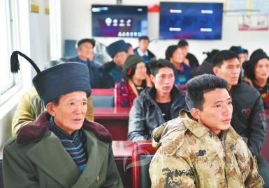 10月28日,把家里的幾頭豬安頓好后,涼山州美姑縣洛俄依甘鄉(xiāng)阿居曲村村民曲比曲千早早地趕到村委會(huì),收看當(dāng)天村上“云端夜校”的第一堂遠(yuǎn)程授課。“現(xiàn)在村里家家戶戶都養(yǎng)豬,收入好不好就看各家豬兒喂得肥不肥,今天是成都的專家講養(yǎng)殖,我眼睛又不太好,想坐前面點(diǎn)。”