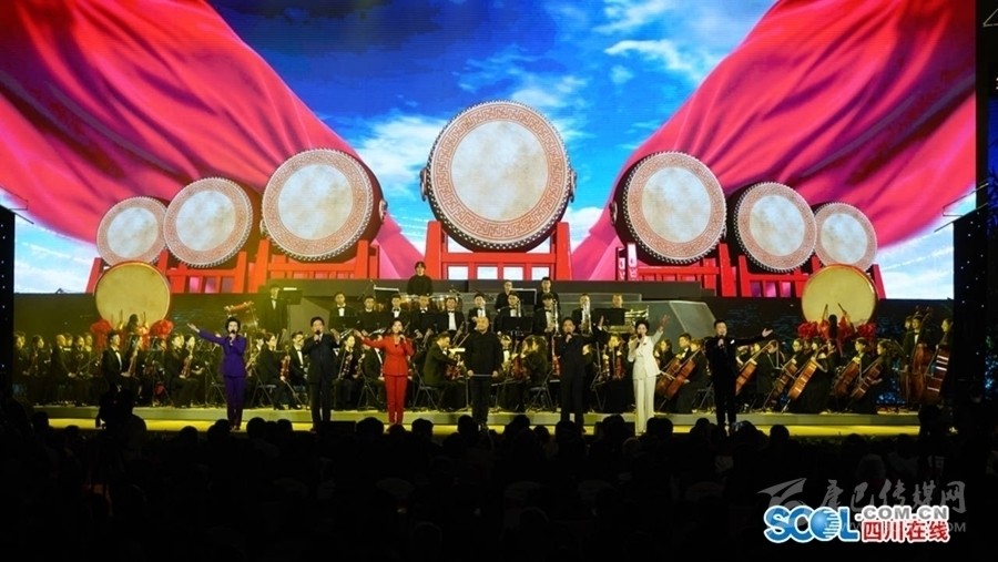 19時30分許,在催人奮進(jìn)的陣陣鼓聲中,開幕式正式開始。胡和平在致辭中表示,第六屆中國詩歌節(jié)在四川省和重慶市兩地一同舉辦,是落實(shí)黨中央推動成渝地區(qū)雙城經(jīng)濟(jì)圈建設(shè)決策部署的務(wù)實(shí)之舉,也是以文化繁榮為經(jīng)濟(jì)社會高質(zhì)量發(fā)展賦能助力的務(wù)實(shí)之舉。剛剛閉幕的十九屆五中全會把文化建設(shè)放在突出位置,明確“十四五”時期文化建設(shè)目標(biāo)要求,提出到2035年建成文化強(qiáng)國的遠(yuǎn)景目標(biāo)。廣大文藝工作者要以習(xí)近平總書記關(guān)于文藝工作的重要論述精神為遵循,貫徹落實(shí)黨中央關(guān)于文化工作的各項(xiàng)決策部署,堅(jiān)持以人民為中心的創(chuàng)作導(dǎo)向,堅(jiān)持與時代同步伐,發(fā)時代之先聲、頌時代之精神,用心用情用功抒寫偉大時代,推出更多謳歌黨、謳歌祖國、謳歌人民、謳歌英雄的精品力作,推動社會主義文化繁榮興盛,為實(shí)現(xiàn)中華民族偉大復(fù)興中國夢凝聚文化力量。