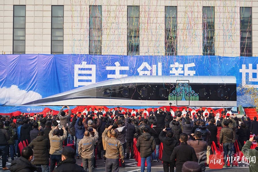 2021年1月13日上午,具有完全自主知識產權的高溫超導高速磁浮工程化樣車及試驗線在西南交通大學九里校區(qū)正式啟用。華小峰 攝