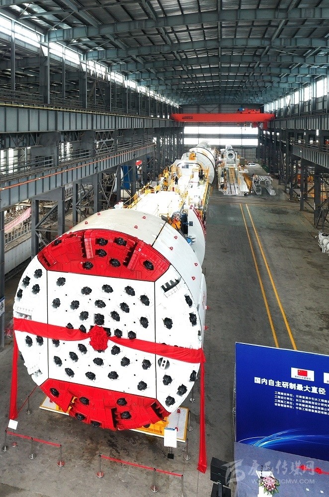 2020年5月8日上午,由中國中鐵裝備集團自主研制的國內最大直徑(9.83米)敞開式巖石掘進機——“云嶺號”在德陽市下線。 何海洋 攝