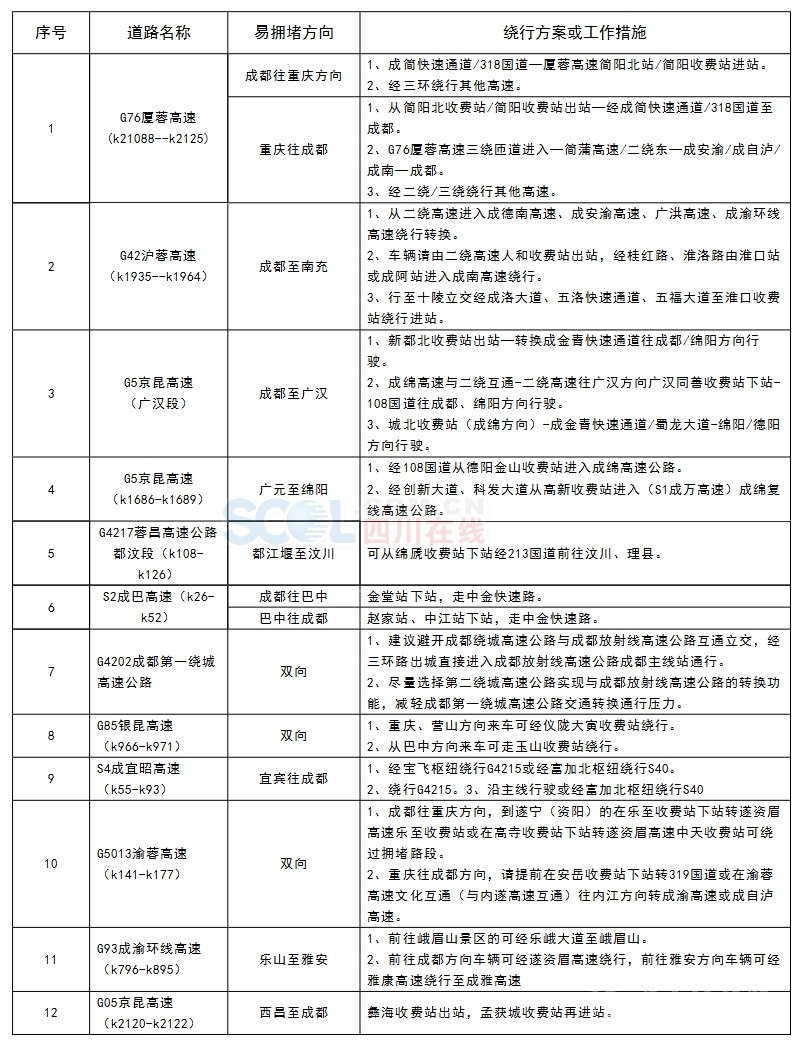 景區(qū)路段及繞行方案