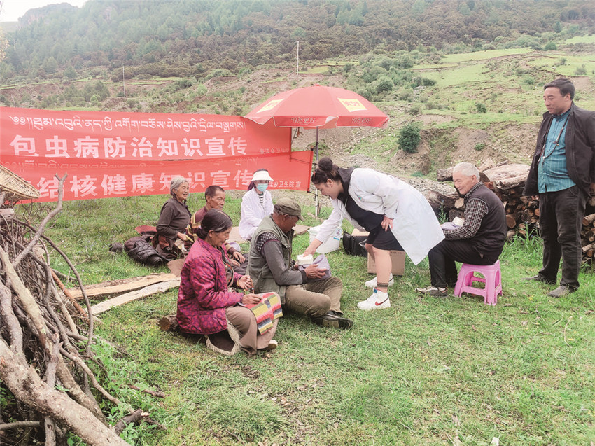 “真沒想到,鄉(xiāng)上為我們想得這么周到?!笨彺宕迕癫剪敻锌卣f(shuō)?,F(xiàn)場(chǎng),麥洼鄉(xiāng)衛(wèi)生院醫(yī)護(hù)人員為農(nóng)牧民群眾量血壓,詳細(xì)詢問(wèn)身體狀況,了解松茸采集期間飲食情況,對(duì)身體不適的農(nóng)牧民群眾耐心指導(dǎo),提出針對(duì)性建議,并免費(fèi)發(fā)放藥物。同時(shí),發(fā)放包蟲病、結(jié)核病、高血壓、婦幼健康知識(shí)宣傳材料,并為農(nóng)牧民群眾耐心細(xì)致講解,提高大家的健康意識(shí)。