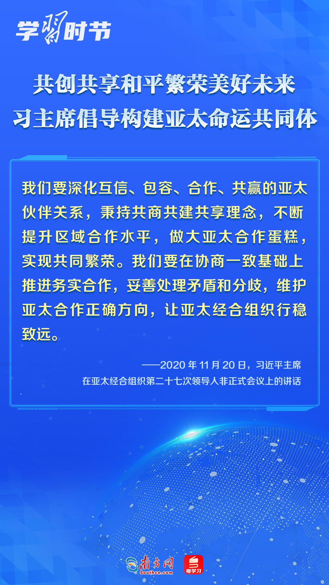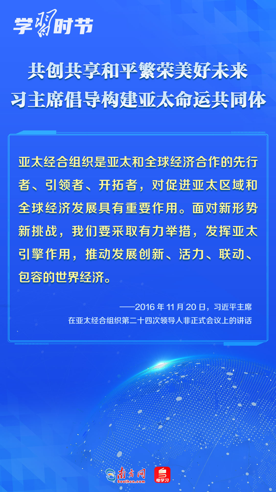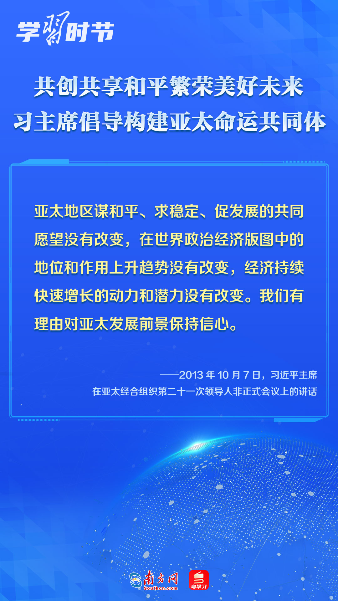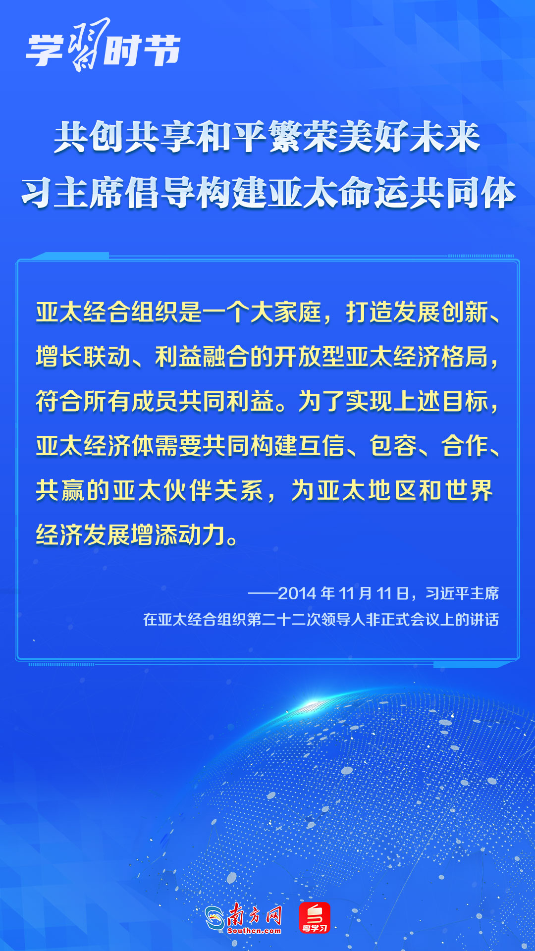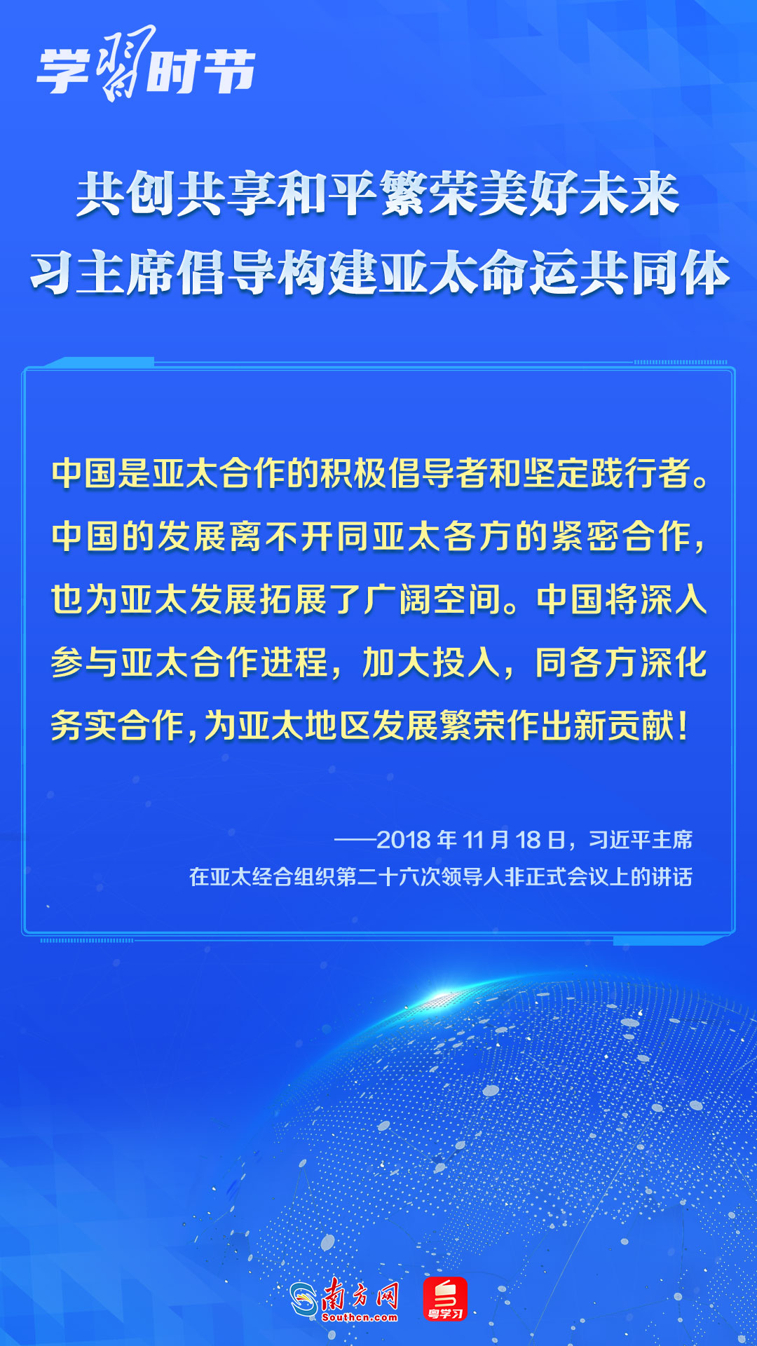 中國(guó)一直是APEC的積極參與者、貢獻(xiàn)者,為推動(dòng)建設(shè)亞太大家庭發(fā)揮了重要作用。習(xí)近平主席多次出席APEC會(huì)議,以中國(guó)主張促進(jìn)亞太合作,以中國(guó)貢獻(xiàn)推動(dòng)亞太發(fā)展,以中國(guó)智慧凝聚亞太共識(shí),多次闡述構(gòu)建開放包容、創(chuàng)新增長(zhǎng)、互聯(lián)互通、合作共贏的亞太命運(yùn)共同體的理念主張和重大意義,讓我們一同學(xué)習(xí)。
