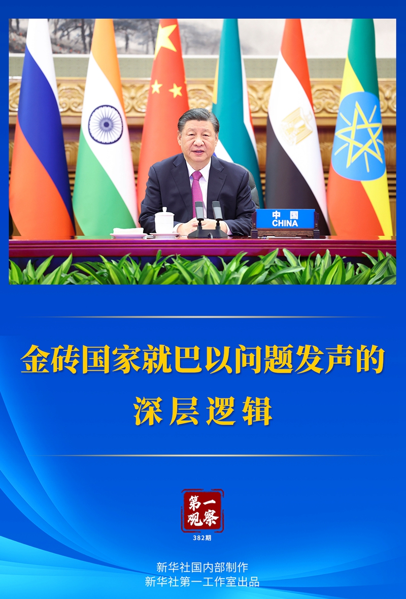 “當(dāng)前形勢(shì)下,金磚國(guó)家就巴以問題發(fā)出正義之聲、和平之聲,非常及時(shí)、非常必要?!痹谥v話中,習(xí)近平主席開宗明義。