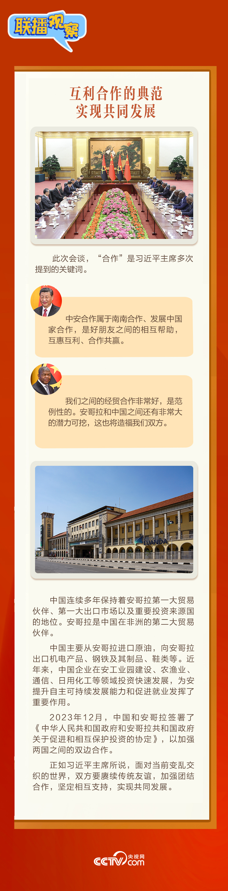 聯(lián)播+3月15日,習(xí)近平主席在人民大會堂同來華進行國事訪問的安哥拉總統(tǒng)洛倫索舉行會談。會談中,習(xí)主席稱洛倫索總統(tǒng)為“中國人民的老朋友”,評價中安關(guān)系“歷經(jīng)國際風(fēng)云變幻考驗,實實在在造福了兩國人民”。