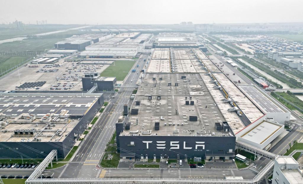 ??這是2023年9月26日在中國(guó)(上海)自由貿(mào)易試驗(yàn)區(qū)臨港新片區(qū)拍攝的特斯拉上海超級(jí)工廠(無(wú)人機(jī)照片)。新華社記者劉穎攝