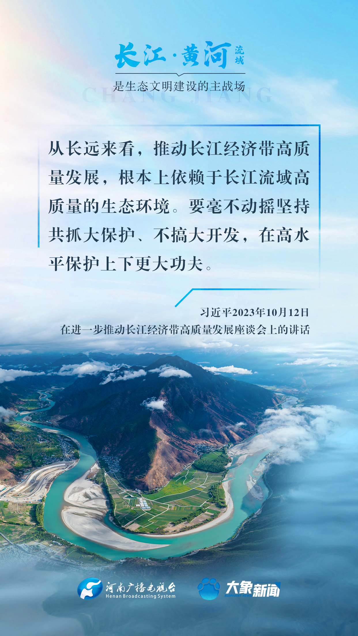 長江、黃河都是中華民族的母親河,習近平總書記高度重視長江、黃河的生態(tài)保護,多次諄諄告誡:“保護母親河是事關中華民族偉大復興和永續(xù)發(fā)展的千秋大計”“長江、黃河流域是生態(tài)文明建設的主戰(zhàn)場”等等。在第55個世界地球日到來之際,大象新聞與您一起,感受總書記對母親河的深厚情懷。