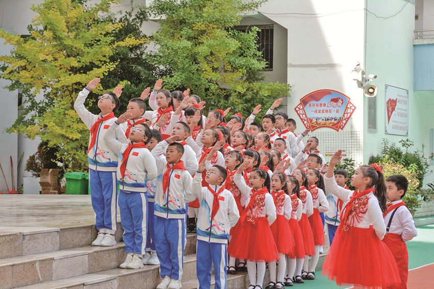 活躍提升組織生活也是少先隊(duì)工作強(qiáng)基固本的重要環(huán)節(jié)。通過(guò)健全少先隊(duì)階梯式成長(zhǎng)激勵(lì)體系;全面實(shí)施分批入隊(duì)、分段教育、分級(jí)激勵(lì)和推優(yōu)入團(tuán);依托“紅領(lǐng)巾獎(jiǎng)?wù)隆备采w隊(duì)中教育全過(guò)程等措施,全市14至15周歲新入團(tuán)團(tuán)員經(jīng)由少先隊(duì)組織推優(yōu)入團(tuán)達(dá)100%。此外,全覆蓋開(kāi)展“開(kāi)學(xué)第一堂隊(duì)課”、主題隊(duì)課活動(dòng),規(guī)范舉行入隊(duì)儀式等,讓少先隊(duì)員組織意識(shí)和光榮感全面增強(qiáng)。