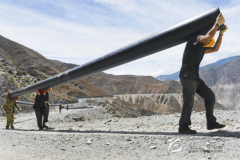 工人在安放水管。