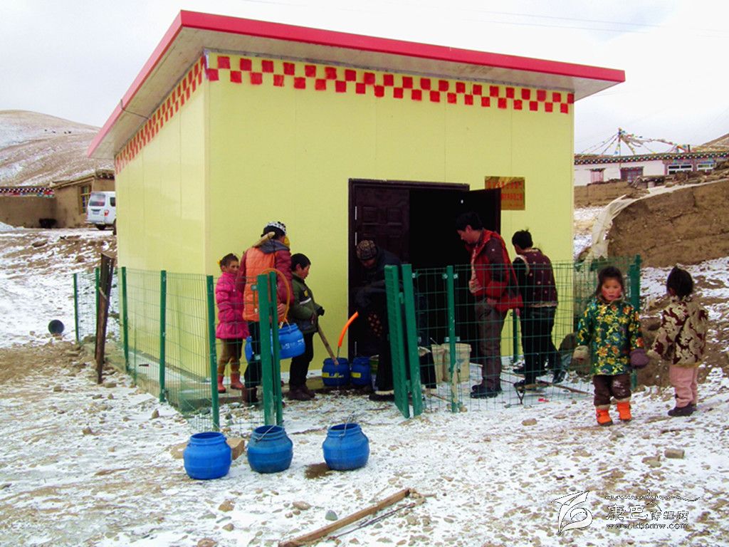 經(jīng)過反復(fù)設(shè)計(jì)檢驗(yàn),地質(zhì)工程勘察院最終采用了“泵房、水池雙重保溫、定時(shí)供水及時(shí)排水”的方案來解決以上問題。在儲(chǔ)水箱和里外出水管上都裹上厚厚的保溫隔熱材料,非凍期24小時(shí)按需供水,冰凍期因需要及時(shí)排水來確保水箱、水管無殘留水被冰凍而采取早中晚定時(shí)供水。通過一個(gè)水文年尤其是一個(gè)寒冬的考驗(yàn),50口示范井成功地為最低零下45度的石渠縣包蟲病區(qū)的居民提供了清潔水源,解決了高原寒冬供水的難題。