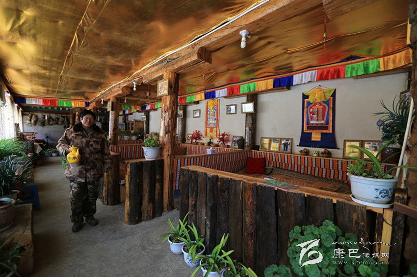 走進(jìn)里吾鐵超家近80根柱頭的藏房,金碧輝煌的經(jīng)堂、精致的唐卡、精妙的雕刻、細(xì)膩的墻畫,無一不讓人驚嘆叫絕。難怪主人家說“前次一批浙江游客在這里住了整整兩天也不想離去。”里吾林卡經(jīng)營才一年多,卻早已聲明遠(yuǎn)揚(yáng),不僅城里人休息日專門來這里體驗綠色生活,靜心養(yǎng)息,南來北往的過往游客也慕名前來小憩,探秘藏家風(fēng)情,品味藏家文化。