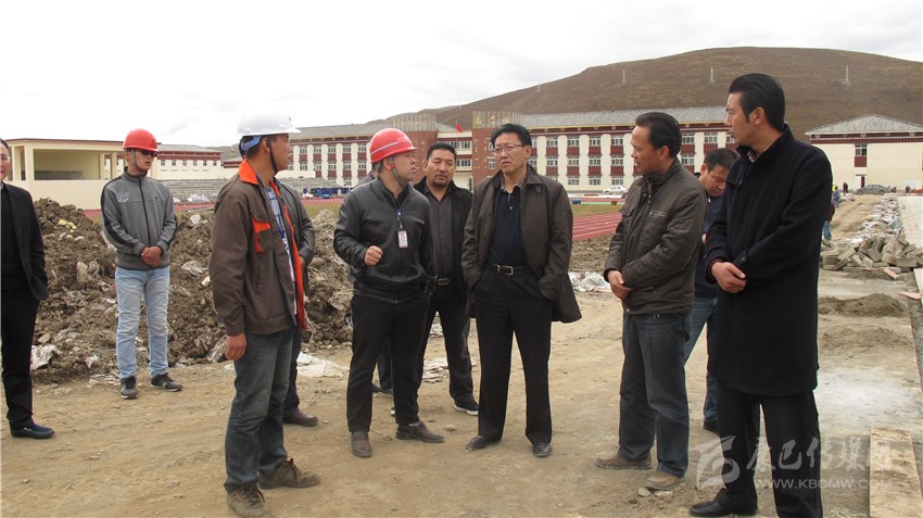 州委常委、色達縣委書記張平森(左三)聽取洛若鎮(zhèn)建設情況匯報。