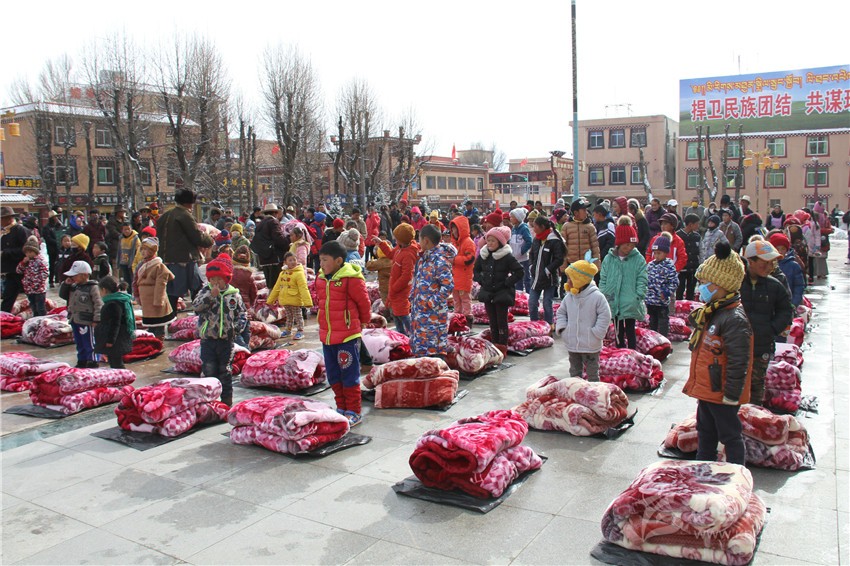 本網(wǎng)訊(葉強平 文/圖)元旦前夕,理塘縣關(guān)心下一代工作委員會在縣城格薩爾廣場舉行了“老少牽手·溫暖童心”暖冬行動,100名貧困學生領(lǐng)到爺爺、奶奶們捐贈的“愛心”毛毯。