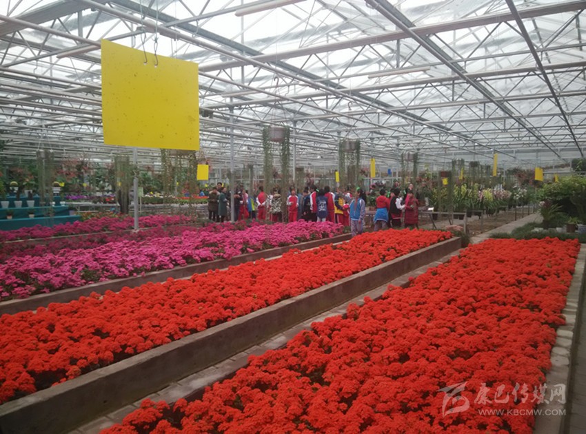 考察團(tuán)坐上觀光電瓶車,穿行在產(chǎn)業(yè)園內(nèi)3000余畝的百合及各種花卉中間,香氣宜人,流連忘返;走進(jìn)單棟面積達(dá)10000平米的14個(gè)連棟智能溫室花卉大棚,妖艷的水仙,高挑的百合,艷麗的百合,白色的、黃色的、紅色的、粉色的,讓人眼花繚亂,置身于花海中的你,一年四季都有花看、有花賞。