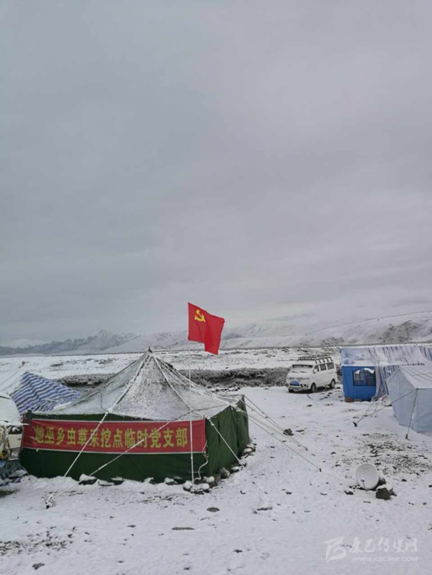 “我們隔三差五就到山上來(lái)巡查一次,一方面要對(duì)農(nóng)牧民群眾進(jìn)行宣講,另一方面重要解決群眾的實(shí)際問(wèn)題和困難?!彼睦稍驼f(shuō),在他身后,是白日貢村的蟲草采挖點(diǎn)的臨時(shí)黨支部,一面鮮艷的黨旗在高原上迎風(fēng)飄揚(yáng),成為茫茫高原上一道靚麗的風(fēng)景線。