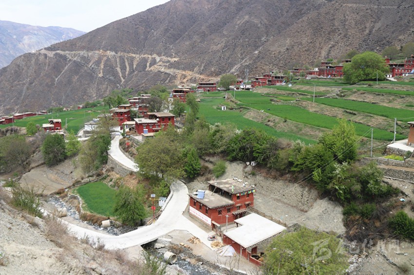 高山深谷之中,青稞翠綠、鳥語花香。蜿蜒的通村硬化路將四五個自然村落連成一片,整潔的聯(lián)戶路將一棟棟紅色藏房綴成了幾個小圈,仿佛是經(jīng)過精心擺放的紅瑪瑙項鏈;太陽能路燈錯落有致,點綴在平坦寬闊的水泥村道上,與兩旁漂亮的紅藏房相得益彰,顯得特別賞心悅目;村中心的交叉路口,幾名群眾正忙著給新建的青稞面粉加工廠房安裝設(shè)備;村民活動室里,幾名村干部正在討論農(nóng)民夜校的事情;在房前屋后土地上,隨處可見頂著烈日勞作的群眾,他們有的在為青稞除草,有的在為豌豆施肥,還有的在檢查著自家的野生蜜蜂蜂箱……