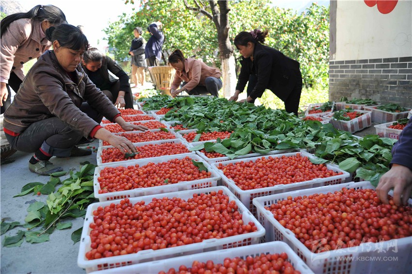 采購商正在收購紅櫻桃。